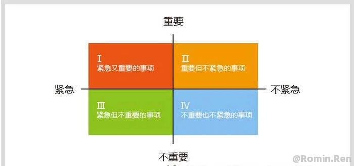 确保目标准确、确定时间节点、确保开发进度、与高层及时沟通、确保团队信息对等、需求管理……这一切,都是打磨“你”这个产品过程中涉及到的项目管理要素,对于目标准确,时间节点,进度与沟通等,老付之前的文章里提及太多太多的方法论和模型了,例如制定目标的SMART法则、需求管理的冰山模型、开发进度的项目进度表、沟通的乔哈尔视窗等等,包括这个阶段很重要的管理能力也不赘述(《怎么才能做好团队管理|方法论加模型案例》)。这里想讲一个古老但是非常重要包括老付自己都没有做好的常用时间管理模型,当你贡献的社会价值越大,会发现时间管理越重要: